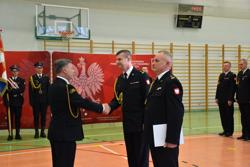 9 stycznia 2026 roku w Szkole Podoficerskiej Państwowej Straży Pożarnej w Bydgoszczy odbyła się uroczysta zbiórka z udziałem kadry oraz pracowników szkoły. Uroczystość została zorganizowana z okazji zdania i objęcia stanowiska Zastępcy Komendanta Szkoły oraz pożegnania funkcjonariuszy kończących służbę w Państwowej Straży Pożarnej.