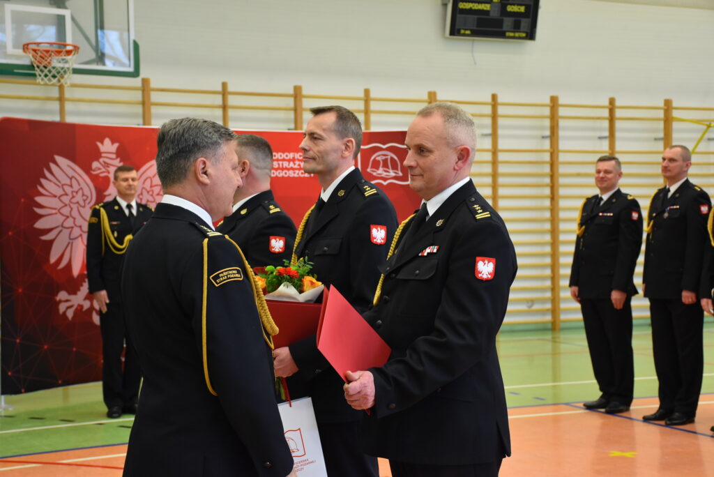 Wśród żegnanych funkcjonariuszy był zastępca komendanta Szkoły Podoficerskiej PSP w Bydgoszczy st. bryg. mgr inż. poż. Robert Sawosz. Swoją służbę rozpoczął w Szkole Aspirantów PSP w Poznaniu, a od 1995 roku związał się ze Szkołą Podoficerską PSP w Bydgoszczy. W kolejnych latach pełnił służbę m.in. jako instruktor, wykładowca oraz Naczelnik Wydziału Nauczania, a w 2013 roku został powołany na stanowisko Zastępcy Komendanta Szkoły. Nadzorował kluczowe obszary funkcjonowania Szkoły, w tym proces dydaktyczny oraz Jednostkę Ratowniczo-Gaśniczą, a w ostatnich latach aktywnie uczestniczył w pracach zespołów KG PSP dotyczących reformy systemu kształcenia i przepisów kwalifikacyjnych. Znany z dyspozycyjności i zaangażowania, pełnił również funkcje przewodniczącego wielu komisji i zespołów zadaniowych. Odznaczony m.in. Krzyżem Zasługi za Dzielność, Brązowym Medalem za Długoletnią Służbę, Złotą Odznaką „Zasłużony dla Ochrony Przeciwpożarowej” oraz Złotym Znakiem Związku OSP RP.