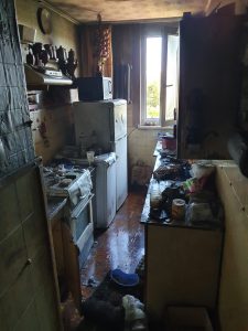 W dniu 16 maja strażacy ze Szkolnej JRG zostali zadysponowani do pożaru przy ulicy Dworcowej w Solcu Kujawskim. Po przybyciu na miejsce zdarzenia zastano pożar wyposażenia pokoju w mieszkaniu w bloku. W lokalu były odcięte media (prąd i gaz). Przed przyjazdem część mieszkańców bloku klatki pierwszej i drugiej opuściło swoje mieszkania (liczba osób 19). Miejsce akcji zabezpieczono. Działania ratowników polegały na wpuszczeniu roty do mieszkania (drzwi wejściowe otwarte) w celu ugaszenia pożaru i przeszukania. Po wejściu do mieszkania zastano leżącego na podłodze w przedpokoju lokatora. Poszkodowany był przytomny, poparzony, ewakuowano go na zewnątrz, udzielono KPP poprzez wsparcie psychiczne, tlenoterapię i przekazano ZRM. Mężczyzna miał poparzoną twarz i drogi oddechowe. W czasie działań ewakuowano mieszkańców klatki schodowej tj. około 13 osób oraz psa. Po oddymieniu i przewietrzeniu klatki schodowej ponownie przeszukano mieszkanie – brak osób. W mieszkaniu na parterze znajdowała się kobieta, która miała problemy z poruszaniem się. Kobieta w czasie działań pozostała pod opieką strażaka. Wszystkie mieszkania sprawdzono pod kątem zadymienia i obecności tlenku węgla –brak zagrożenia. Mieszkanie objęte pożarem sprawdzono też przy użyciu kamery termowizyjnej.