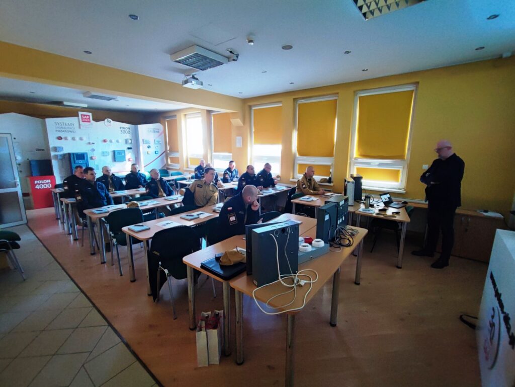 W dniu 18.03.2025 roku odbyła się odprawa szkoleniowa kadry dowódczej Jednostki Ratowniczo-Gaśniczej Szkoły Podoficerskiej PSP w Bydgoszczy oraz dyżurnych Szkolnego Stanowiska Kierowania. Dzięki uprzejmości największego polskiego producenta systemów sygnalizacji pożarowej, część zajęć odbyła się na terenie firmy POLON-ALFA S.A. Funkcjonariusze JRG SP PSP wzięli również udział w zajęciach praktycznych obserwując rozwój pożaru testowego przeprowadzonego w laboratorium POLON ALFA S.A.